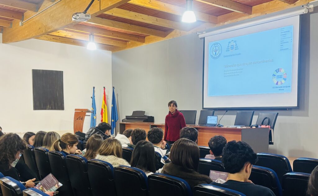 El pasado viernes 23, María Ángeles Fernández González, profesora de la Facultad de Geología, ha explicado de forma muy amena al alumnado de RES cómo los minerales nos ayudan a descontaminar el agua y los suelos. Y, en particular, como utilizando un subproducto de la industria conservera se puede eliminar un metal pesado, el cadmio, del agua. Gracias a @geologiaoviedo por acercar la ciencia a las aulas. #Geología #Divulgación #UNIOVI #BioyGeo #RES #IBQ