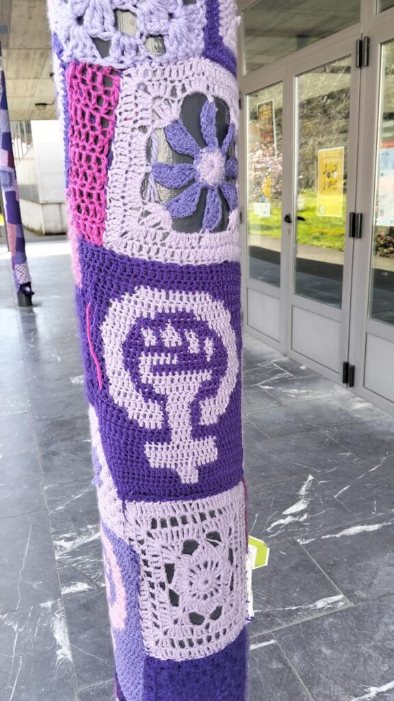 Recuperamos por el 8M un trabajo realizado por la que fue nuestra profesora Amanda Pascual Stevens, que puso a tejer y a crear comunidad tejiendo al Bernardo de Quirós. Fue muy bonito ver como distintas personas se acordaban con cariño de cuando lo habían hecho. Nuestro reto es seguir tejiendo comunidad violeta.